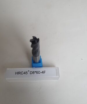 Kietmetalio frezos cilindriniu kotu HRC 45* D8,0*60-4F (4 plunksnų).